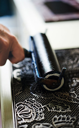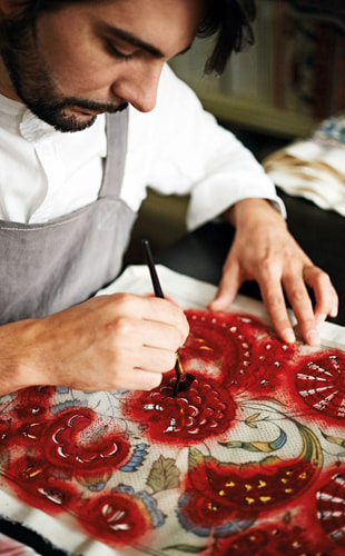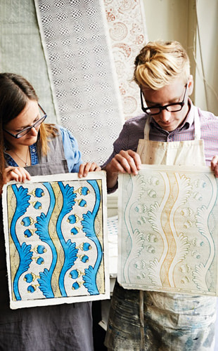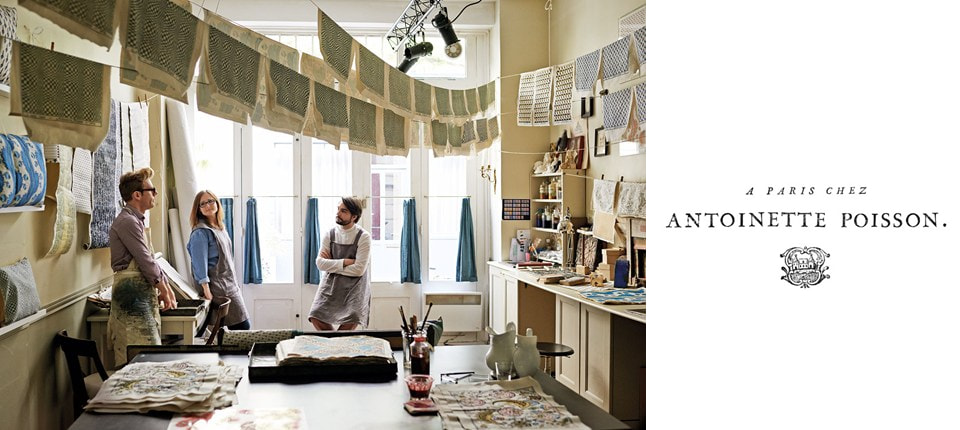 若いフランス人アーティストJulie Stordiau、Vincent Farelly、Jean-Baptiste Martin の3人が立ち上げたブランド“Antoinette Poisson(アントワネットポワソン)”。 大学で古い芸術の修復を学んだ3人は、18世紀に壁紙作りに用いられていたドミノ印刷という工法を忠実に蘇らせて壁紙を再現することに成功しました。現在のようなロールの形ではなく、35cmx45cmという小さなサイズで壁紙をつくり、壁面に一枚一枚貼り重ねていくのが昔ながらのやり方です。 このアーティスティックな壁紙は、モチーフが彫られた木版に黒いインクを乗せて、紙に手で刷りこんだ後、一色一色、色を筆で塗り重ねて作られます。使う色が増えれば増えるほど、手間も増えるので、お値段が高くなってしまうのも納得せざるを得ません。製造はパリ市内に構えたアトリエですべて手作業で行われています。アーティストやフランスの有名ブランドとのコラボレーションも手掛けており、日本での認知度も上がりつつある注目のブランドです。