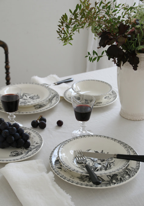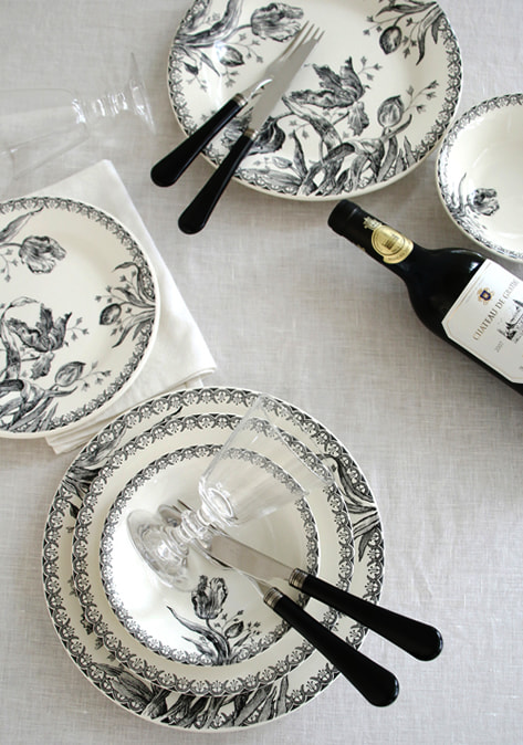 プレート面にチューリップの絵柄を描いたコレクション。ラブリーになりがちな花柄もブラック&ホワイトでとてもシックな雰囲気に仕上げられています。モダンなテーブコーディネートに華やかさをプラスできます。国内ではサラグレースが唯一の取り扱いのシリーズなので大変貴重です。